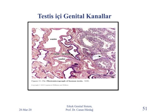 Testis içi Genital Kanallar Prof. Dr. Canan HURDAG Erkek Genital Sistem, 28-Mar-20 Prof. Dr. Canan Hürdağ 51