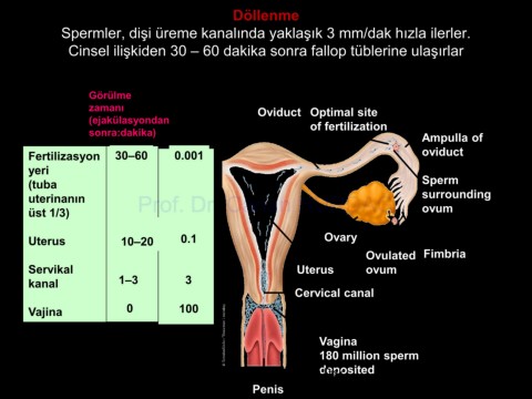 Spermler, dişi üreme kanalında yaklaşık 3 mm/dak hızla ilerler.
