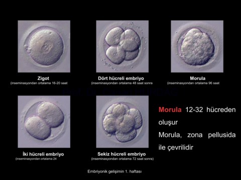 (inseminasyondan ortalama 16-20 saat sonra) (inseminasyondan ortalama 48 saat sonra) (inseminasyondan ortalama 96 saat sonra)