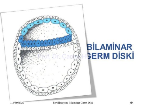 BİLAMİNAR EMBRİYONİK DİSK Prof. Dr. Canan HURDAG 3/30/2020 Fertilizasyon-Bilaminer Germ Disk 64