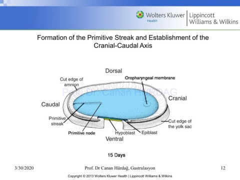 Formation of the Primitive Streak and Establishment of the Cranial-Caudal Axis Prof. Dr. Canan HURDAG 3/30/2020 Prof. Dr Canan Hürdağ, Gastrulasyon 12 Copyright © 2013 Wolters Kluwer Health | Lippincott Williams & Wilkins