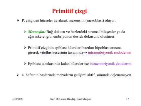 3/30/2020 Prof. Dr Canan Hürdağ, Gastrulasyon 17