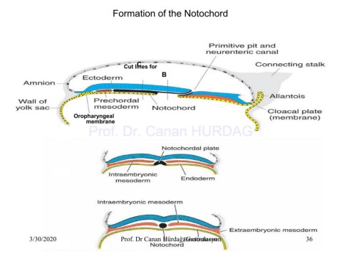 Formation of the Notochord C Cut lines for B Oropharyngeal membrane Prof. Dr. Canan HURDAG A 3/30/2020 Prof. Dr Canan Hürdağ, Gastrulasyon 36