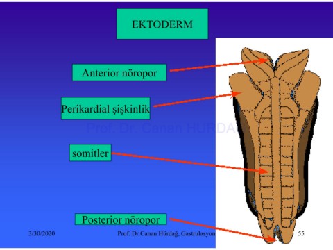 EKTODERM Anterior nöropor Perikardial şişkinlik Prof. Dr. Canan HURDAG somitler Posterior nöropor 3/30/2020 Prof. Dr Canan Hürdağ, Gastrulasyon 55