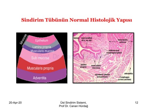 Sindirim Tübünün Normal Histolojik Yapısı Prof. Dr. Canan HURDAG 20-Apr-20 Üst Sindirim Sistemi, 12 Prof Dr. Canan Hürdağ