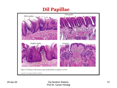 Dil Papillae Prof. Dr. Canan HURDAG 20-Apr-20 Üst Sindirim Sistemi, 51 Prof Dr. Canan Hürdağ