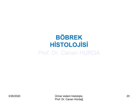 BÖBREK HİSTOLOJİSİ Prof. Dr. Canan HURDA 3/26/2020 Üriner sistem histolojisi, 20 Prof. Dr. Canan Hürdağ