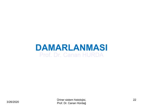 DAMARLANMASI Prof. Dr. Canan HURDA Üriner sistem histolojisi, 22 3/26/2020 Prof. Dr. Canan Hürdağ