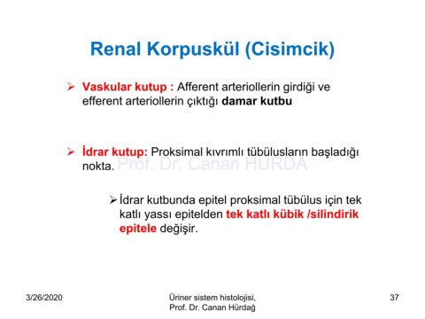 İdrar kutup: Proksimal kıvrımlı tübülusların başladığı