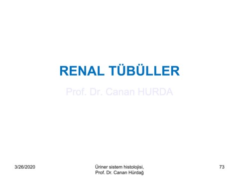 RENAL TÜBÜLLER Prof. Dr. Canan HURDA 3/26/2020 Üriner sistem histolojisi, 73 Prof. Dr. Canan Hürdağ