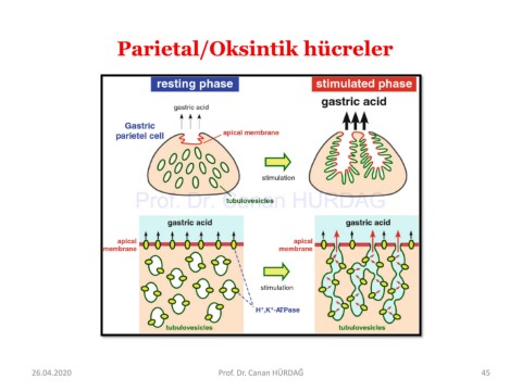 Parietal/Oksintik hücreler Prof. Dr. Canan HURDAG 26.04.2020 Prof. Dr. Canan HÜRDAĞ 45