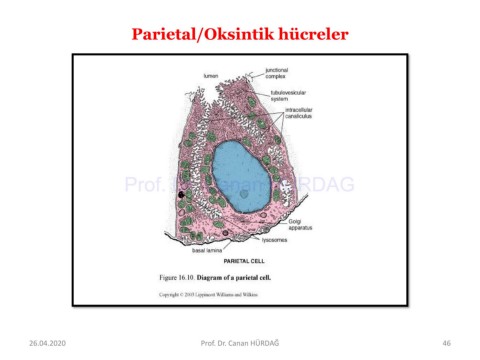 Parietal/Oksintik hücreler Prof. Dr. Canan HURDAG 26.04.2020 Prof. Dr. Canan HÜRDAĞ 46