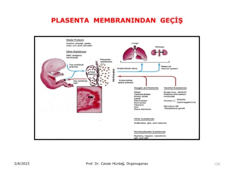 PLASENTA MEMBRANINDAN GEÇİŞ 3/8/2023 Prof. Dr. Canan Hürdağ, Organogenez 120