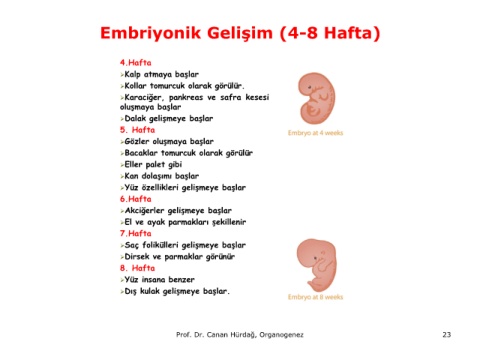 Embriyonik Gelişim (4-8 Hafta)