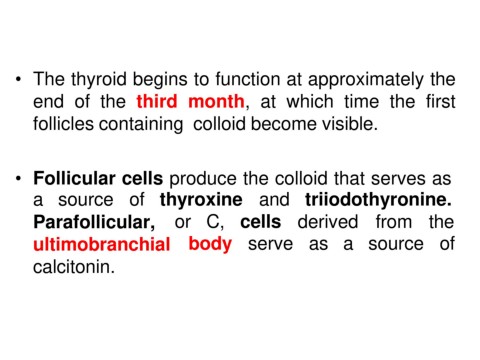• The thyroid begins to function at approximately the
