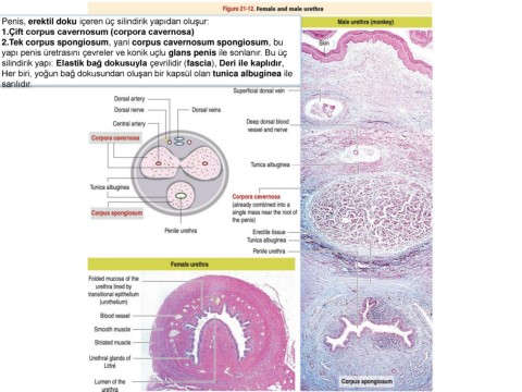 yapı penis üretrasını çevreler ve konik uçlu glans penis ile sonlanır. Bu üç