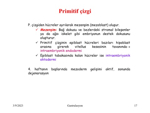 P. çizgiden hücreler ayrılarak mezenşim (mezoblast) oluşur.