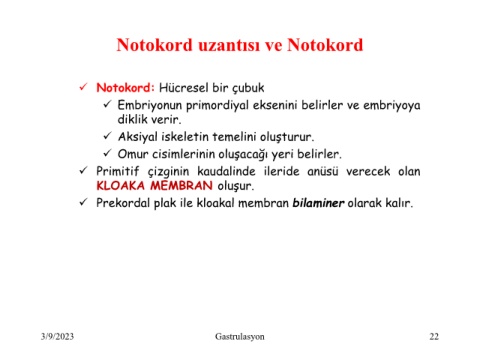 ✓ Prekordal plak ile kloakal membran bilaminer olarak kalır.