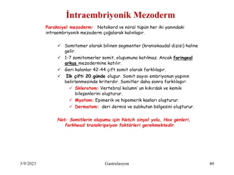 belirlenmesinde kriterdir. Somitler daha sonra farklılaşır: