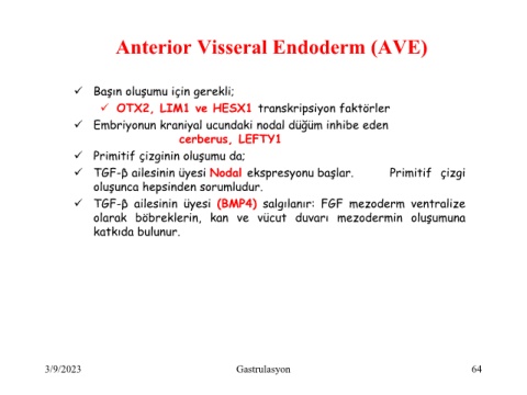 ✓ Embriyonun kraniyal ucundaki nodal düğüm inhibe eden