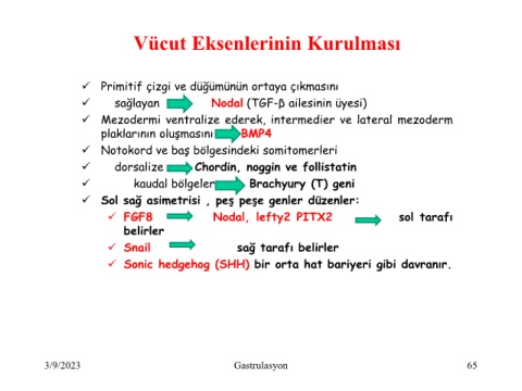 ✓ sağlayan Nodal (TGF-β ailesinin üyesi)