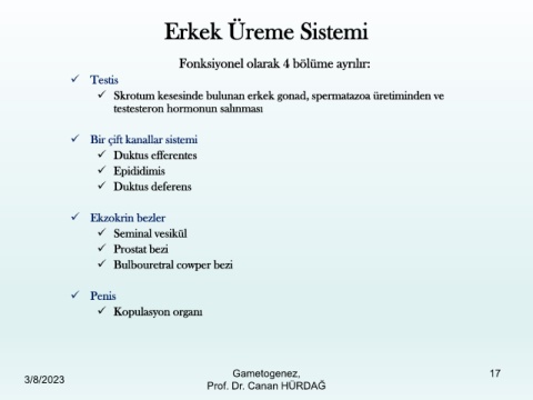 ✓ Skrotum kesesinde bulunan erkek gonad, spermatazoa üretiminden ve
