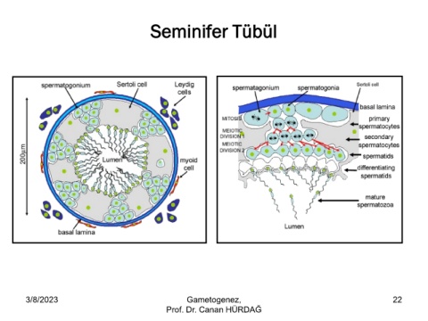 Seminifer Tübül 3/8/2023 Gametogenez, 22 Prof. Dr. Canan HÜRDAĞ