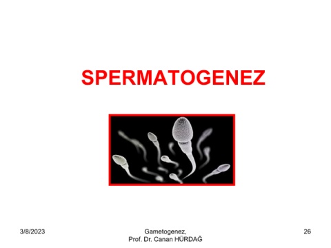 SPERMATOGENEZ 3/8/2023 Gametogenez, 26 Prof. Dr. Canan HÜRDAĞ