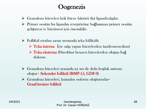 oluşur= Sekonder follikül (BMP-15, GDF-9)