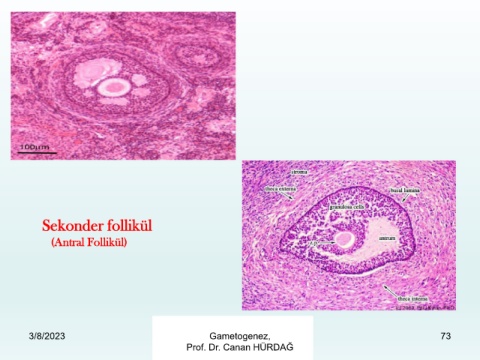 Sekonder follikül (Antral Follikül) 3/8/2023 Gametogenez, 73 Prof. Dr. Canan HÜRDAĞ