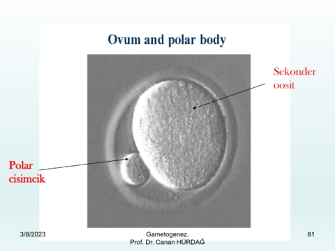 Sekonder oosit Polar cisimcik 3/8/2023 Gametogenez, 81 Prof. Dr. Canan HÜRDAĞ