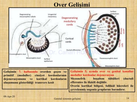 Gelişimin 7. haftasında overden geçen ve Gelişimin 5. ayında over ve genital kanallar
