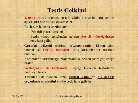 • Testisler işte bundan sonra genital kanal ve dış genital