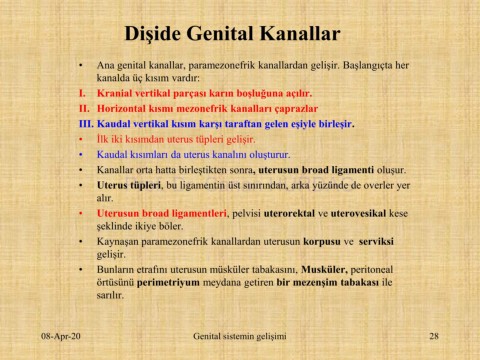 • Kaudal kısımları da uterus kanalını oluşturur.