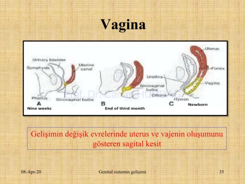 Vagina Prof. Dr. Canan HURDAG Gelişimin değişik evrelerinde uterus ve vajenin oluşumunu gösteren sagital kesit 08-Apr-20 Genital sistemin gelişimi 35