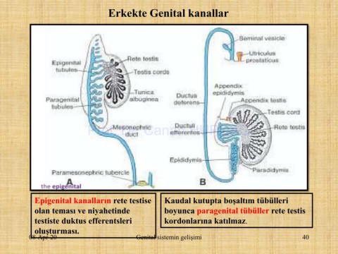 Epigenital kanalların rete testise Kaudal kutupta boşaltım tübülleri