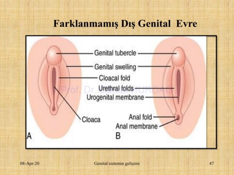 Farklanmamış Dış Genital Evre Prof. Dr. Canan HURDAG 08-Apr-20 Genital sistemin gelişimi 47