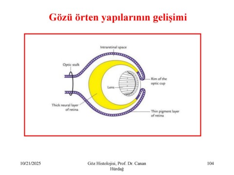 Gözü örten yapılarının gelişimi 10/21/2025 Göz Histolojisi, Prof. Dr. Canan 104 Hürdağ