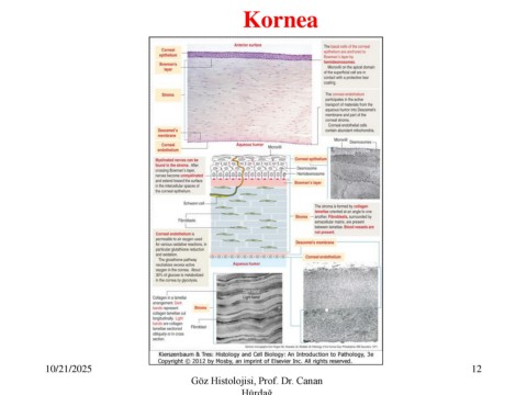 Kornea 10/21/2025 12 Göz Histolojisi, Prof. Dr. Canan Hürdağ