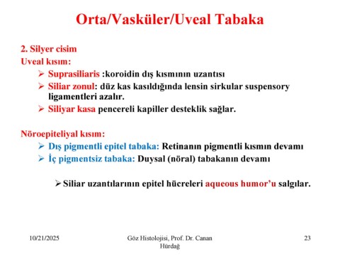 10/21/2025 Göz Histolojisi, Prof. Dr. Canan 23