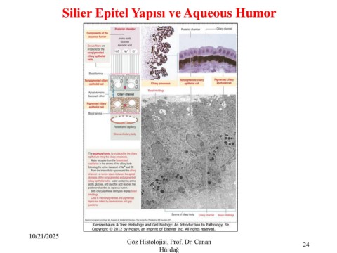Silier Epitel Yapısı ve Aqueous Humor 10/21/2025 Göz Histolojisi, Prof. Dr. Canan 24 Hürdağ