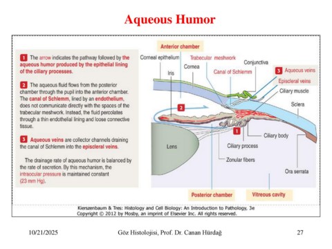 Aqueous Humor 10/21/2025 Göz Histolojisi, Prof. Dr. Canan Hürdağ 27