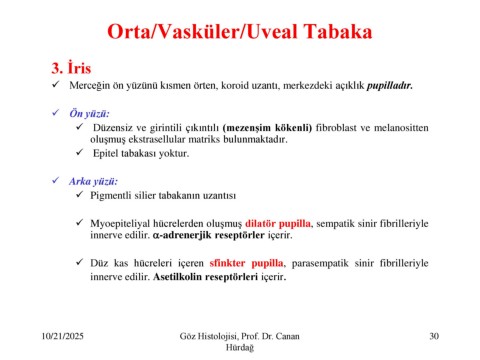 10/21/2025 Göz Histolojisi, Prof. Dr. Canan 30