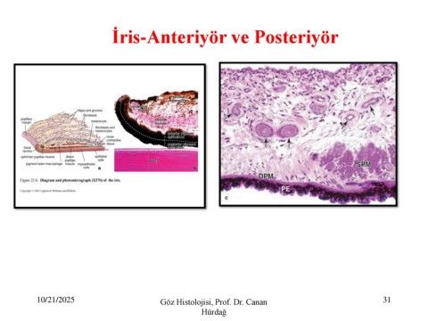 İris-Anteriyör ve Posteriyör 10/21/2025 Göz Histolojisi, Prof. Dr. Canan 31 Hürdağ
