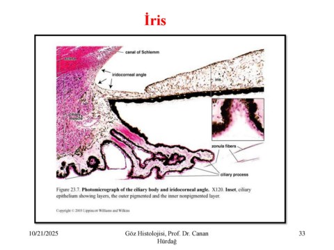 İris 10/21/2025 Göz Histolojisi, Prof. Dr. Canan 33 Hürdağ