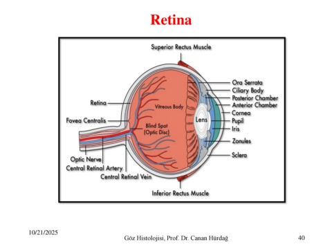 Retina 10/21/2025 Göz Histolojisi, Prof. Dr. Canan Hürdağ 40
