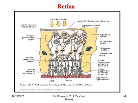 Retina 10/21/2025 Göz Histolojisi, Prof. Dr. Canan 61 Hürdağ