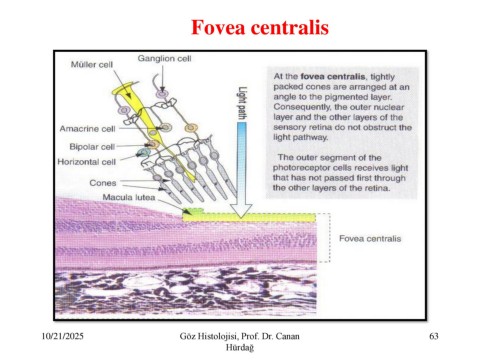 Fovea centralis 10/21/2025 Göz Histolojisi, Prof. Dr. Canan 63 Hürdağ
