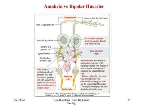 Amakrin ve Bipolar Hücreler 10/21/2025 Göz Histolojisi, Prof. Dr. Canan 67 Hürdağ