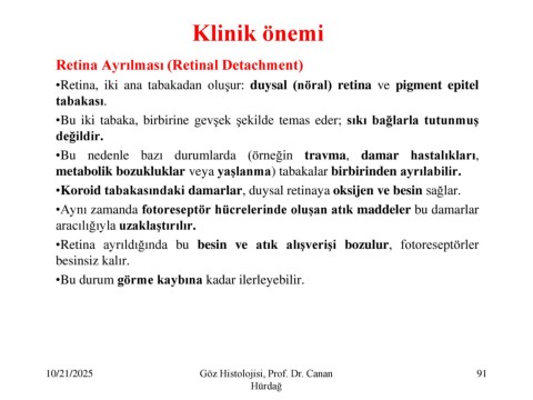 10/21/2025 Göz Histolojisi, Prof. Dr. Canan 91